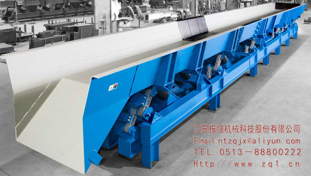 振動(dòng)輸送機(jī)是一種無(wú)牽引構(gòu)件的連續(xù)輸送機(jī)械。它是利用機(jī)械共振原理來(lái)輸送物料的。振動(dòng)輸送機(jī)主要由承載構(gòu)件、彈性元件及激振器等組成。激振器足振動(dòng)輸送機(jī)的驅(qū)動(dòng)機(jī)構(gòu)動(dòng)力源,用以產(chǎn)生激振力,使承載槽產(chǎn)生持續(xù)的振動(dòng)。激振力的大小直接影響著承載的振幅,其交變頻率即為輸送機(jī)的工作頻率。承載體為槽形或管形振動(dòng)料槽,在振動(dòng)過(guò)程中,將能量傳給物料,使之沿輸送方向作連續(xù)拋擲運(yùn)動(dòng)。承載體為參振質(zhì)體,需具有足夠的剛度和強(qiáng)度。減振支承裝置既是整機(jī)的支承裝置,又作減振用。